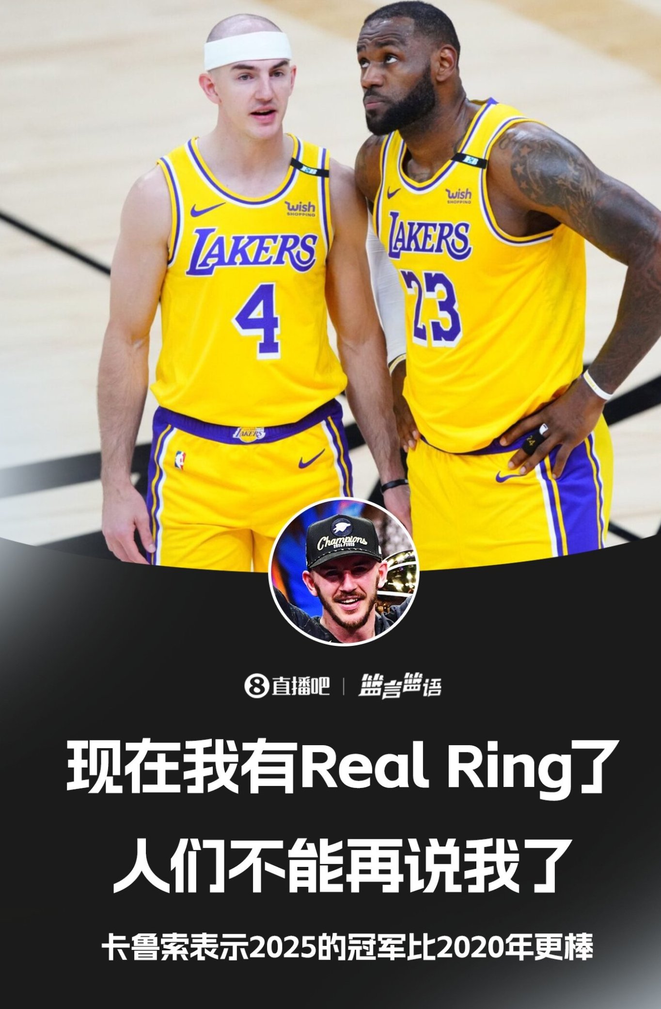 卡魯索笑著回答說:“是的,我現(xiàn)在有一個(gè)真正的總冠軍了,現(xiàn)在其他人不能再說什么了(Yeah, now I got a real one, now no one can say anything! )!”