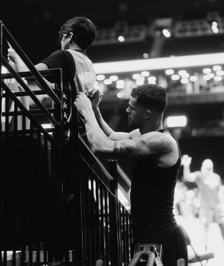 小邁克爾·波特賽后更新社媒,曬出了比賽的花絮以及和前隊友寒暄的照片,并配文寫道:“一場精彩的勝利?!?/p>
