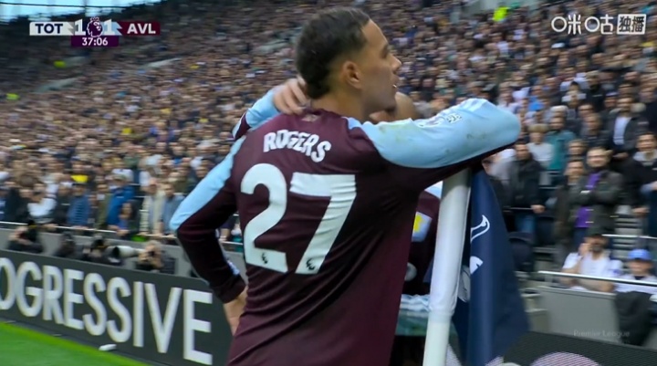 比賽第38分鐘,羅杰斯禁區(qū)前沿帶球后轟出一記落葉球世界波!維卡里奧望球莫及!
