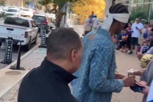 人品沒得說,馬刺雷霆賽前亞歷山大給酒店外等候的球迷簽名!