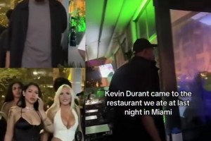 哇塞,小帥會(huì)玩?。∶烂綍褚曨l:杜蘭特帶一群辣妹一起吃飯