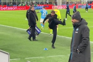 意大利炮!實拍:那不勒斯被判點后孔蒂在梅阿查場邊怒踢皮球染紅