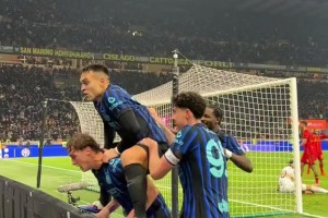 從小就愛往上爬!實拍:皮奧為國米破僵后,勞塔羅第一個“上墻”