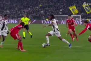 尤文打破僵局!圖拉姆禁區(qū)內(nèi)勁射近角破門!本菲卡門將撲救不及!