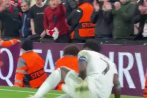 維尼修斯在和布拉德利對抗中倒地,慘遭利物浦球迷怒罵