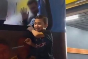 有愛?!梅西和小球迷隔窗打招呼