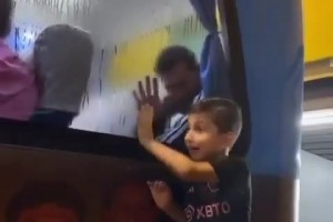 實拍:為了看清車外的孩子,梅西試圖擦掉巴士車窗的水漬