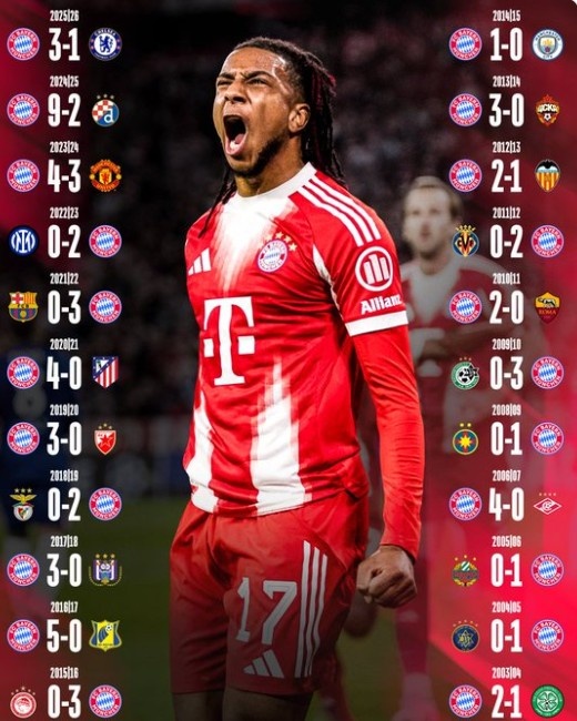 拜仁已經(jīng)連續(xù)22個賽季在歐冠首輪比賽取勝,他們面對的對手包括了巴薩、國米、曼城、曼聯(lián)等隊。上賽季,拜仁在歐冠聯(lián)賽階段首輪比賽曾以9-2的比分血洗薩格勒布迪納摩。