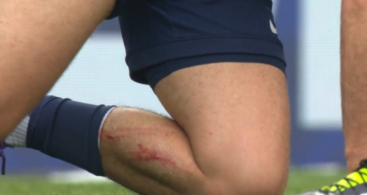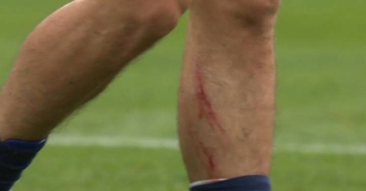 09月14日訊 法甲第4輪巴黎vs朗斯第28分鐘,K77遭愛德華鏟球受傷傷退,小腿兩道血痕十分明顯,無法堅(jiān)持比賽被換下,姆巴耶登場!