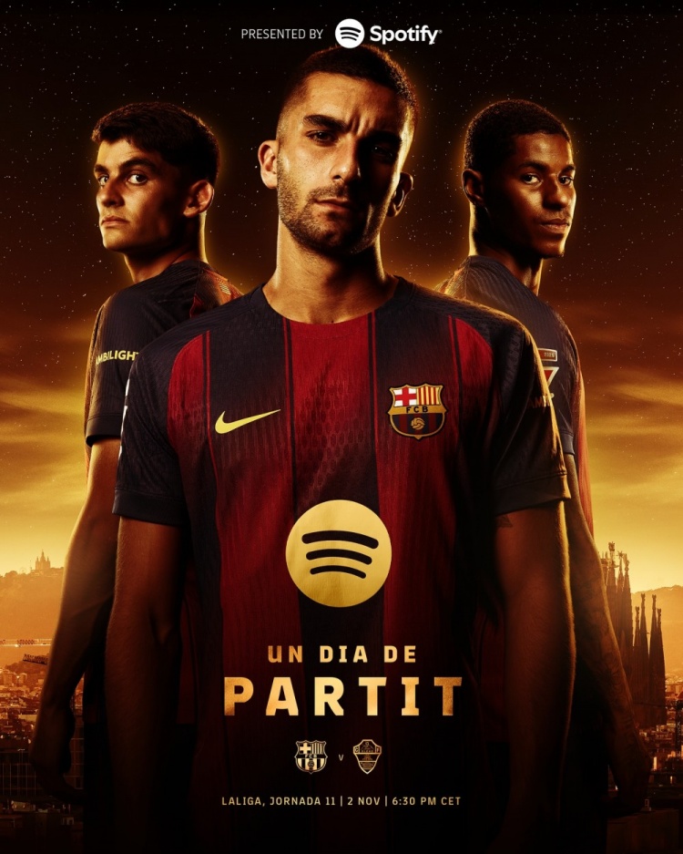 巴薩官方社媒發(fā)布了為此役制作的海報(bào),費(fèi)蘭-托雷斯、拉什福德、馬丁出鏡。