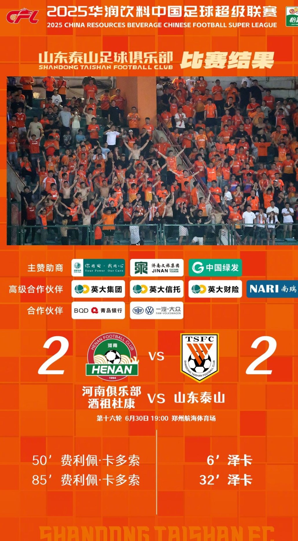 感謝所有遠(yuǎn)赴客場(chǎng)冒雨支持球隊(duì)的球迷朋友們。球隊(duì)在這場(chǎng)比賽中跌宕起伏,沒有展現(xiàn)出應(yīng)有的技戰(zhàn)術(shù)水平。球隊(duì)會(huì)利用間歇期強(qiáng)化訓(xùn)練,重整旗鼓,堅(jiān)定信心,激發(fā)斗志,迎接下半程的聯(lián)賽。 ???