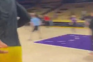 此前名場面:詹姆斯熱身又從狄龍身旁跑過去!隨后投了一個超級離譜的三分