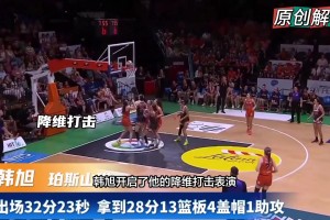 韓旭狂轟28+13+4帽炸場!在世界第二強度聯(lián)賽上演“降維打擊”