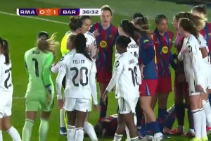 巴薩女足偷襲失敗+倒地引來和皇馬女足球員沖突