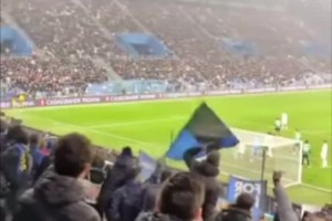 藍(lán)黑生涯首球!實(shí)拍:阿坎吉頭槌破門,國米球迷看臺一片歡騰